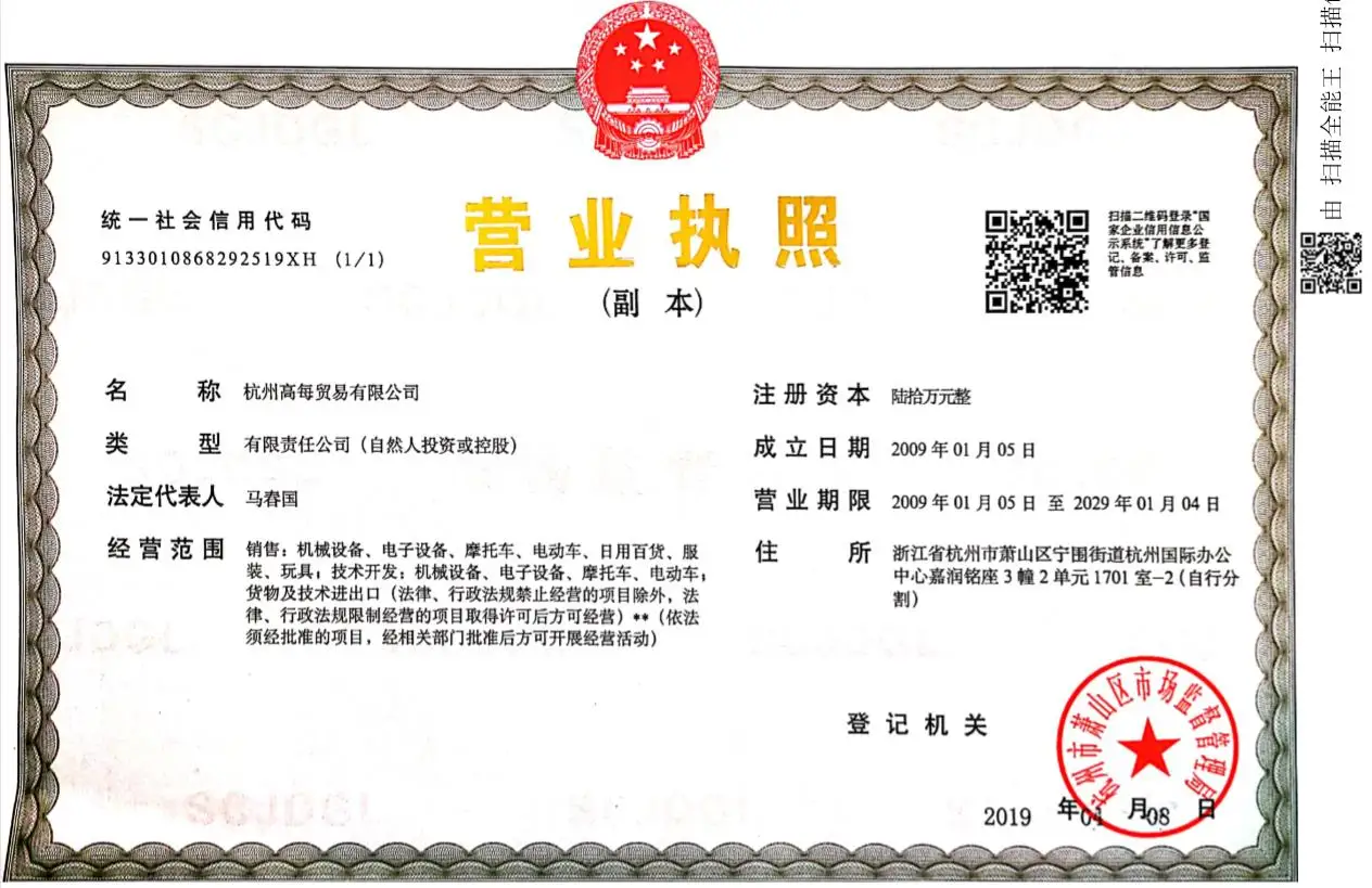 Registered address : Room 1701-2, Unit 2, Building 3, Jiarun Mingzuo, Hangzhou International Office Center, Ningwei Street Hangzhou Zhejiang China